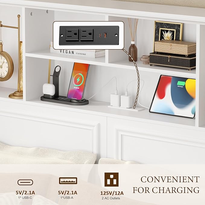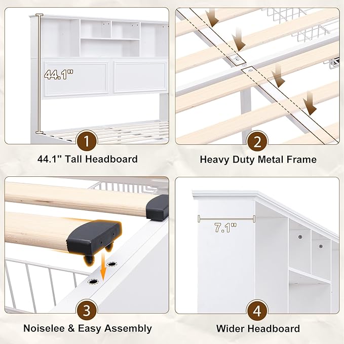 Combining a solid metal frame with sturdy wooden slats, this queen bed frame offers exceptional support for your mattress, with a load-bearing capacity of up to 800 pounds for even weight distribution and long-lasting durability. Its 4 spacious metal frame drawers with smooth wheels provide ample under-bed storage, helping you keep your bedroom tidy and organized.