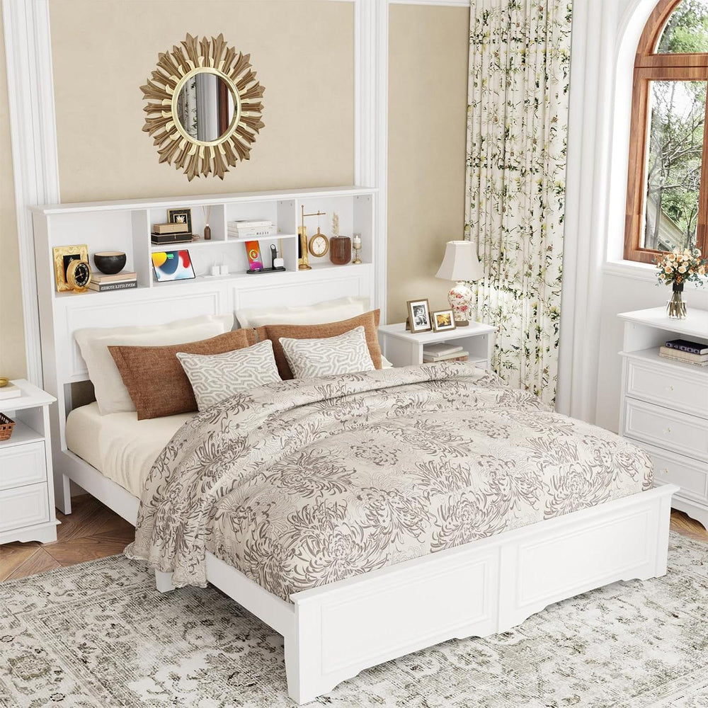 Farmhouse Queen Size Bed Frame with 4 Storage Drawers