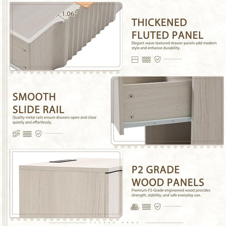 Retro Fluted Queen Bed Frame with 55" Tall Headboard and Storage Drawers