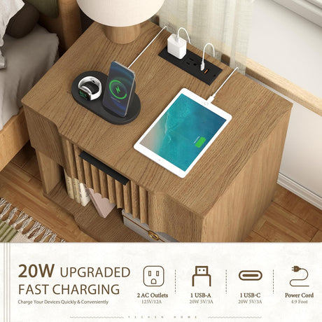 $419.99$600.00Unit price /Unavailable Fluted Nightstand with Charging Station