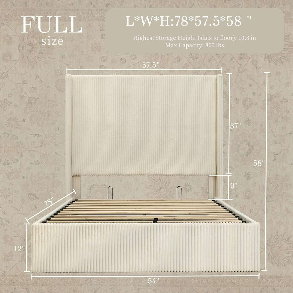 Yechen Bed Frame with Lift Up Storage, 58" Tall Headboard and Upholstered Wingback Platform Bed Frame, Hydraulic Support, No Box Spring Needed, Gray Corduroy - Grey / Full is backordered and will ship as soon as it is back in stock.