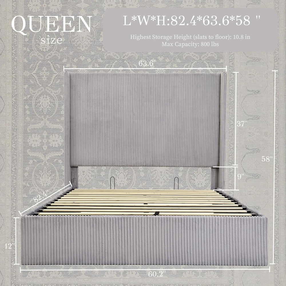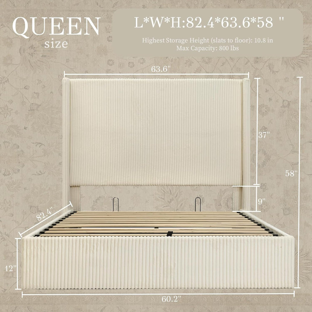 Soft Corduroy with Wingback Design – Wrapped in cozy corduroy fabric and accented with wingback sides, adding warmth, comfort, and a secure, inviting feel to this lift up bed