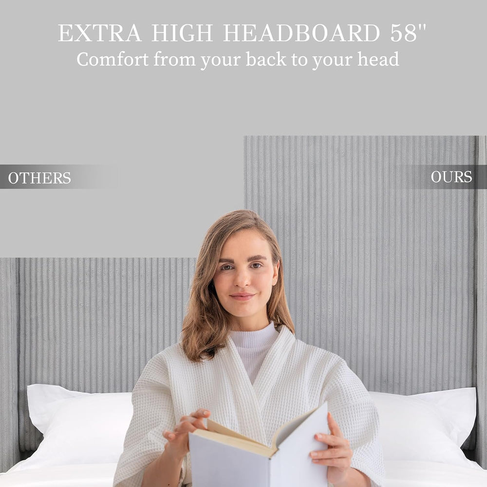 Yechen Bed Frame with Lift Up Storage, 58" Tall Headboard and Upholstered Wingback Platform Bed Frame, Hydraulic Support, No Box Spring Needed, Gray Corduroy