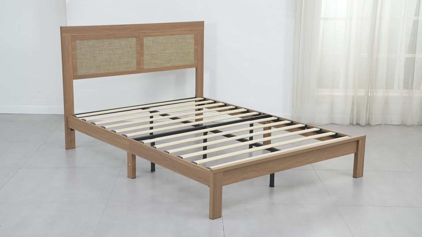 Bring natural elegance to your bedroom with our Rattan Boho Full Bed Frame. Combining the warmth of natural wood with the timeless appeal of rattan texture, this bed creates a serene, spa-like atmosphere that transforms your space into a peaceful retreat.