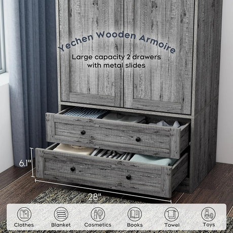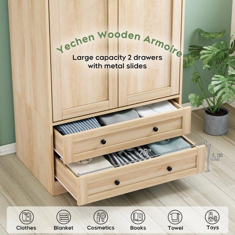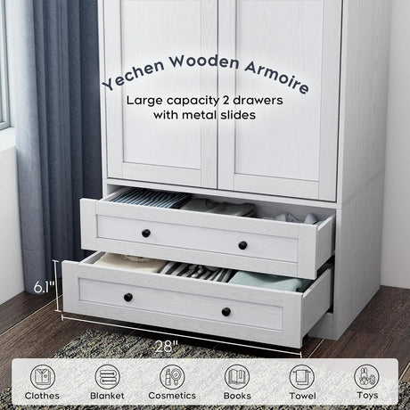 YECHEN 71" Modern Armoire Wardrobe: All-in-One Storage with 2 Drawers & Adjustable Shelves