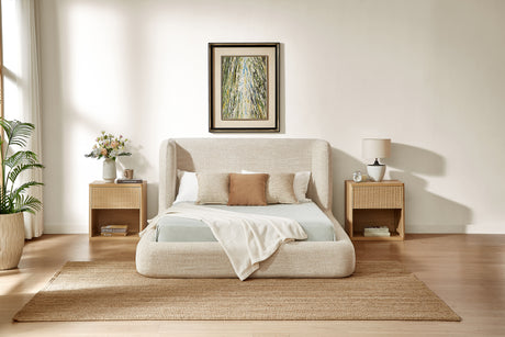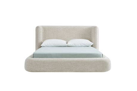 YECHEN Queen Cloud Bed Frame - Modern Upholstered Platform Bed with Curved Headboard, Water-Resistant Bouclé Fabric, Tool-Free Assembly, No Box Spring Needed