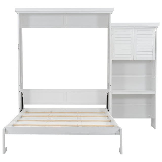 89" Queen Murphy Bed with Closet, Drawers & Shelves - Rattan Wall Bed