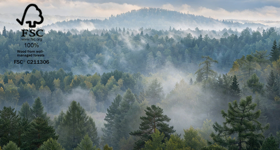 We believe in beauty without compromise. 100% of our wood products are FSC-certified, ensuring they come from responsibly managed forests that provide environmental, social, and economic benefits