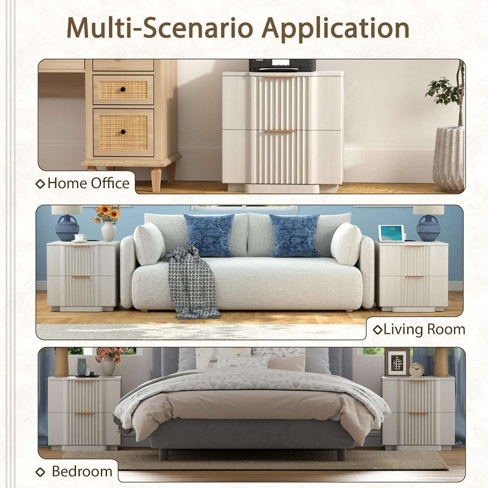 Fluted Nightstand with Charging Station - Modern Bedside Convenience
