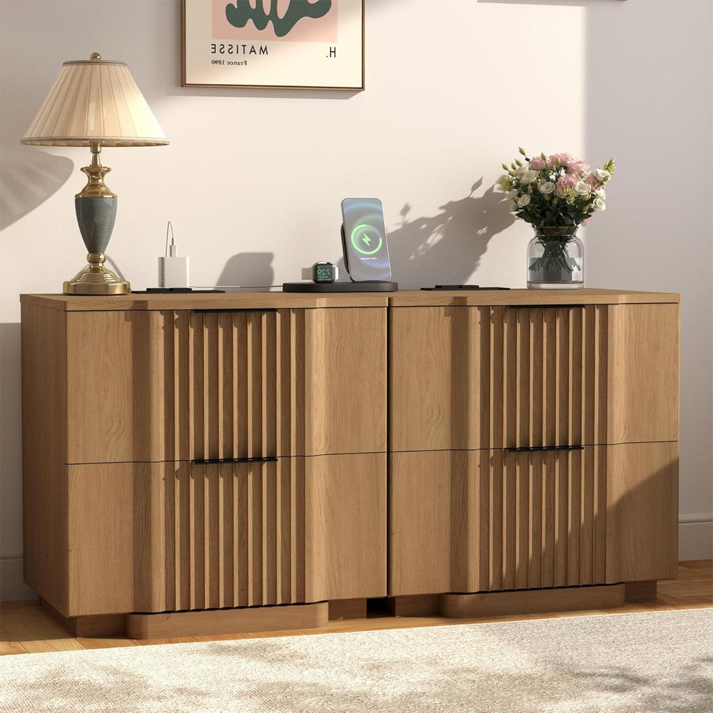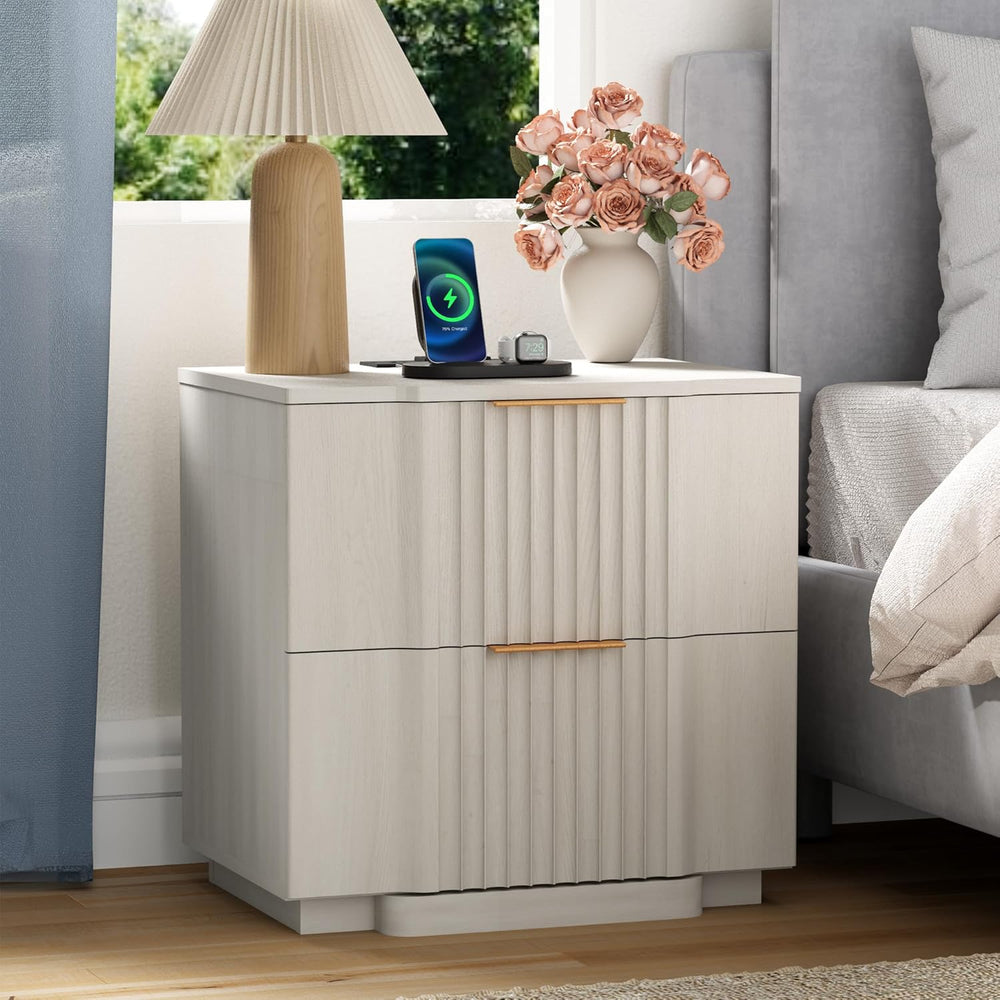 This set of two nightstands expertly merges sophisticated design with practical functionality. The standout feature is the elegant 1.06-inch thick fluted drawer paneling in a sleek white oak finish, which delivers a modern aesthetic compatible with contemporary, farmhouse, and minimalist bedrooms.