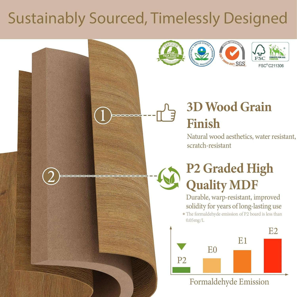 We believe in beauty without compromise. 100% of our wood products are FSC-certified, ensuring they come from responsibly managed forests that provide environmental, social, and economic benefits
