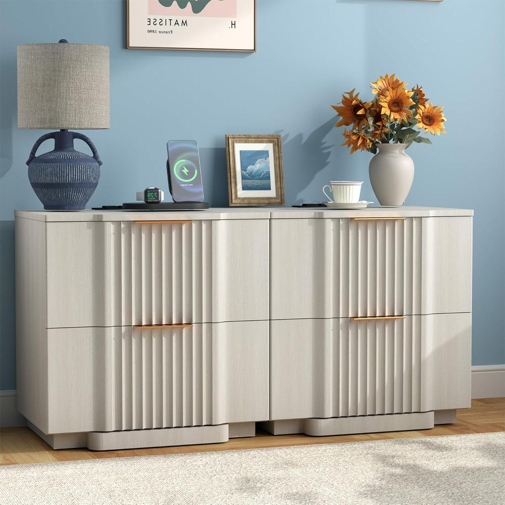 Beyond its stylish curved wave design, the nightstand is highly functional. It is equipped with upgraded fast-charging outlets and USB ports, creating a convenient bedside charging station. The unit offers substantial storage with two spacious drawers and a wide tabletop, ideal for organizing nighttime essentials. Constructed from premium P2-grade engineered wood with a reinforced base, it promises exceptional durability and stability without wobbling.