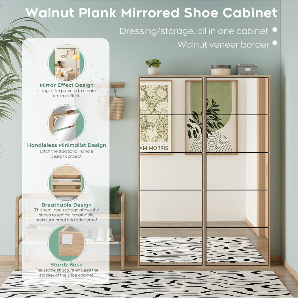[Dual anti-tipping, more safety] Two sets of anti-tipping devices ensure safety when using the freestanding shoe cabinet. Meanwhile the slides are adjustable, allowing the slim shoe cabinet to fit different distances from the wall. The visually reasonable flip drawer door design allows one to find and remove shoes quickly. Explosion-proof mirror, not easy to break.