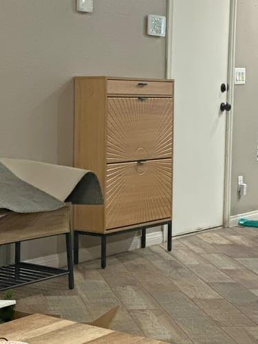 The distinctive half-circle rattan doors create a stunning focal point that elevates your entryway from purely functional to beautifully designed. The flip-up door mechanism provides instant visibility of your entire shoe collection, making morning routines faster and more organized. No more digging through piles to find matching pairs!