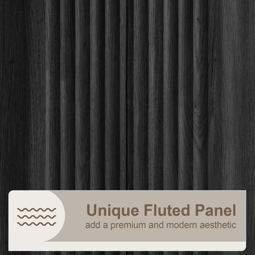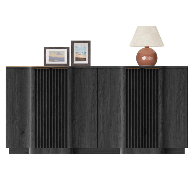 55" Buffet Cabinet with Storage, Modern Fluted Sideboard in Black – FSC Wood, Adjustable Shelves
