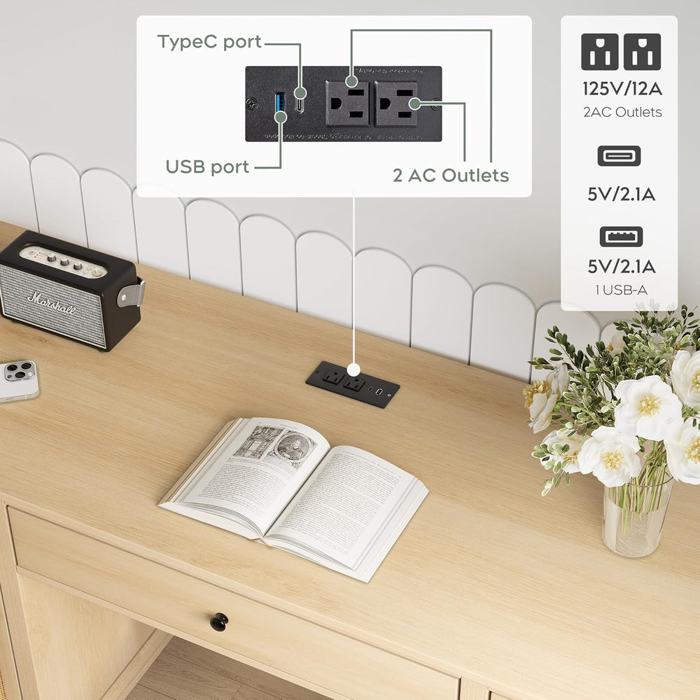 The spacious 58-inch desktop provides ample room for multitasking, complemented by built-in power outlets and USB ports for convenient device charging. Offering outstanding organization, it features seven generously sized drawers to store office supplies, documents, and personal items. Designed for hassle-free setup with clear instructions and all necessary tools included, the desk is also constructed with FSC-certified wood, making it an elegant, practical, and environmentally conscious choice for any workspace.