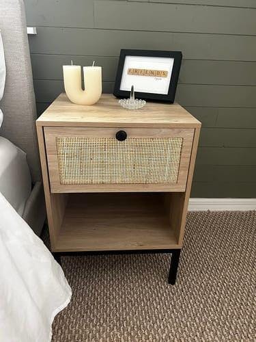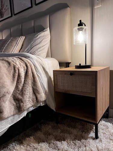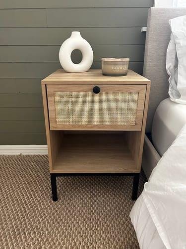 The spacious drawers provide ample storage for books, glasses, phone chargers, and bedtime essentials, keeping your bedroom clutter-free and peaceful. The natural rattan design complements a wide range of décor styles—from modern boho to coastal, farmhouse, and minimalist interiors.