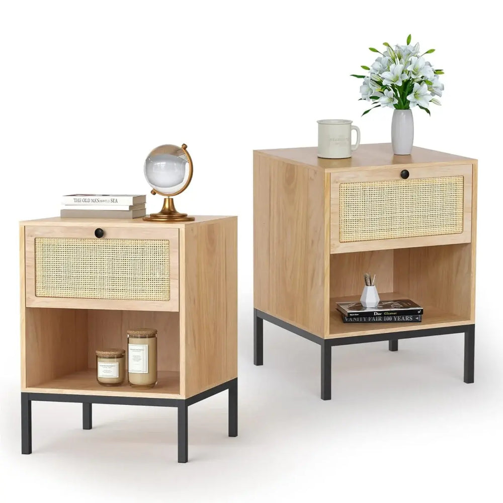 Boho Rattan Nightstand with Drawers - 2 Pack Set