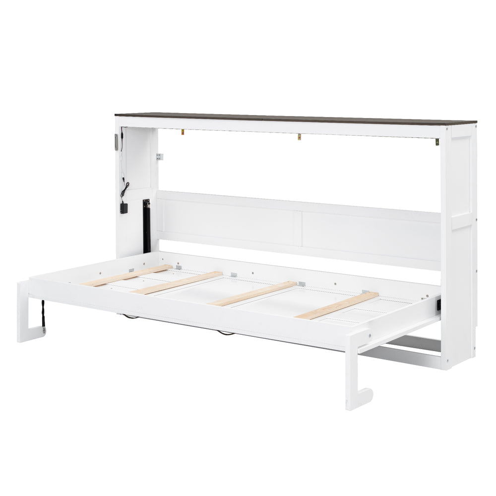 Twin Size Murphy Bed with LED Lights, Foldable Wall Bed Frame