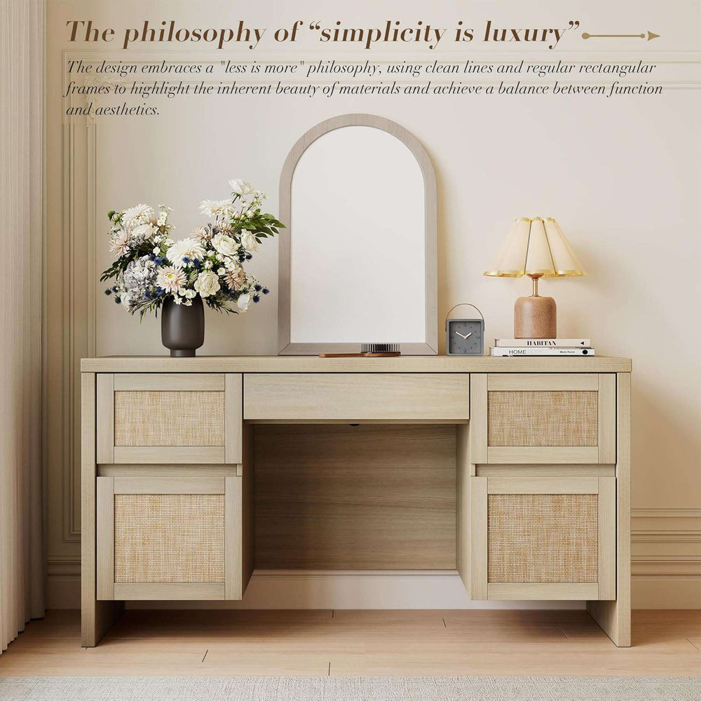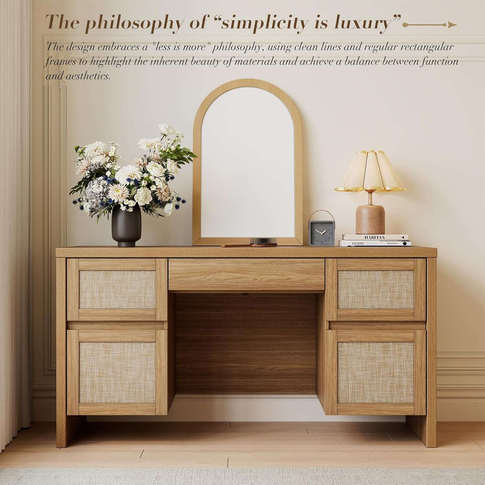 57-Inch Modern Rattan Executive Desk - Style Meets Function